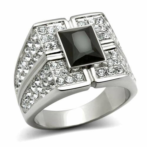 The centerpiece of the TK320 ring is a synthetic glass stone, which is both beautiful and affordable. The synthetic glass is designed to mimic the appearance of natural gemstones, providing a striking look without the high price tag. The center stone is jet black in color, adding a touch of sophistication and elegance to the overall design.