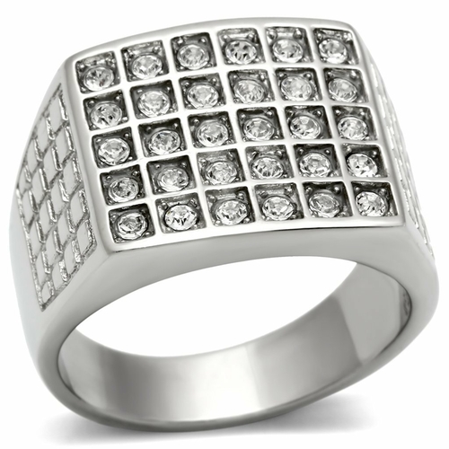 TK358 High Polished Stainless Steel Ring featuring a clear top grade crystal centerpiece, showcasing its elegant design and shiny finish.