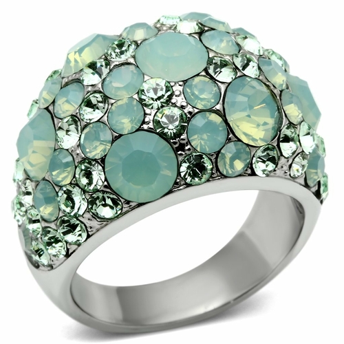 TK641 High Polished Stainless Steel Ring featuring a multi-color top grade crystal, showcasing its elegant design and shine.