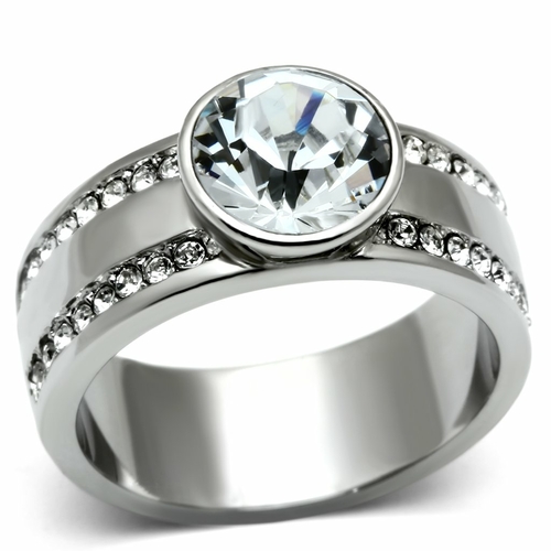 The design of the TK646 ring is both modern and timeless. Its sleek lines and polished surface create a sophisticated look that can complement any outfit. Whether you're dressing up for a special event or looking for a stylish accessory for everyday wear, this ring is versatile enough to suit any occasion. The clear top grade crystal at the center enhances the overall aesthetic, catching the light beautifully and adding a touch of glamour.