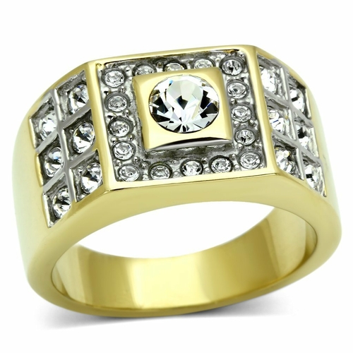 Product Title: TK762 - Two-Tone IP Gold (Ion Plating) Stainless Steel Ring with Top