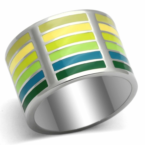 The TK819 High Polished Stainless Steel Ring with Epoxy can be styled in various ways. Pair it with other rings for a trendy stacked look, or wear it alone for a minimalist statement. Its multi-color epoxy stone allows it to coordinate well with a variety of outfits, from casual jeans and a t-shirt to elegant dresses. This versatility makes it a must-have addition to your jewelry collection.