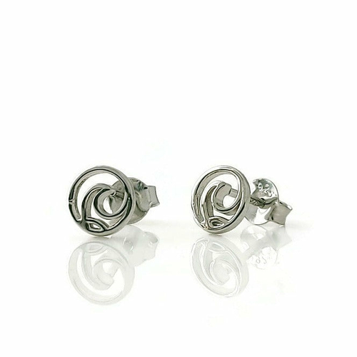 Tofino Little Circle Surf Wave Stud Earring in sterling silver with rhodium, rose gold, and yellow gold plating options, showcasing a delicate ocean-inspired design.