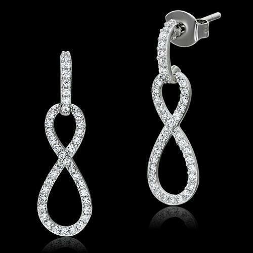 TS067 Rhodium 925 Sterling Silver Earrings featuring AAA Grade clear cubic zirconia, showcasing elegance and shine.