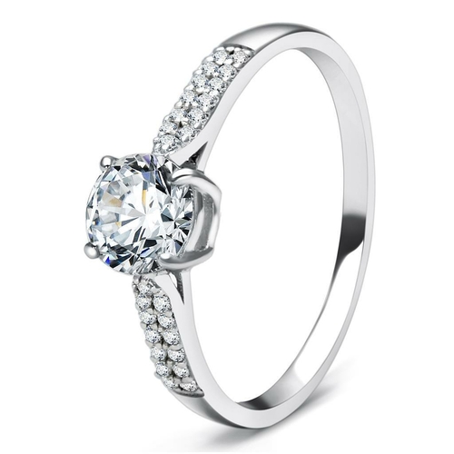 At the heart of the TS080 ring is an AAA grade cubic zirconia (CZ) stone. CZ is a popular diamond alternative that offers exceptional clarity and brilliance. The clear color of the stone mimics the look of a high-quality diamond, making it an ideal choice for those who want the sparkle without the hefty price tag. The AAA grade designation indicates that this stone has been cut to perfection, ensuring maximum light reflection and a dazzling appearance.