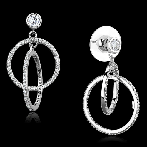 TS294 Rhodium 925 Sterling Silver Earrings featuring AAA Grade clear cubic zirconia, showcasing their elegant design and shine.