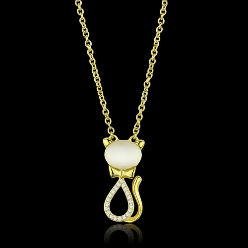 The centerpiece of this pendant is a synthetic Cat Eye stone, known for its unique optical phenomenon that resembles a cat's eye. The stone is white in color, providing a striking contrast against the gold and silver tones of the pendant. This captivating stone is not only beautiful but also symbolizes protection and good luck, making it a meaningful addition to your jewelry collection.