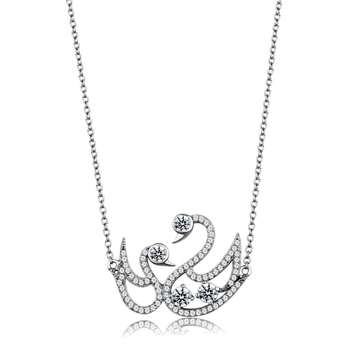 TS447 Rhodium 925 Sterling Silver Chain Pendant featuring AAA Grade clear CZ stone, showcasing its elegant design and high-quality materials.