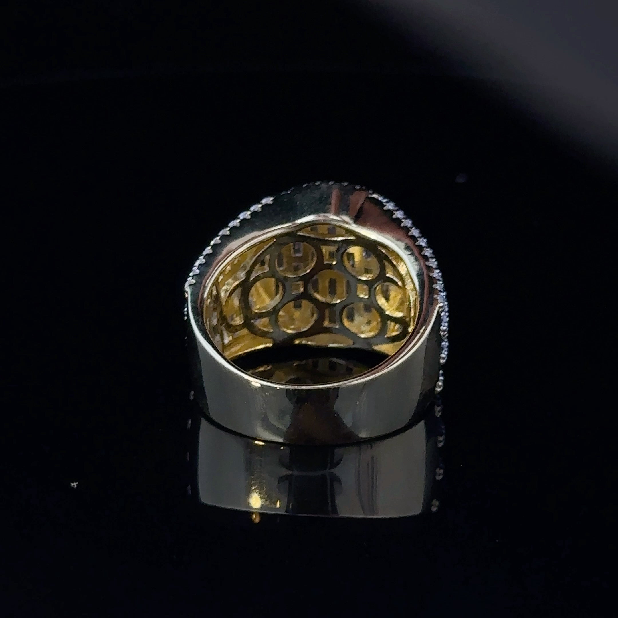 This ring is made with Grade AAA high-quality cubic zirconia stones, ensuring that it not only looks beautiful but also stands the test of time. The CZ stones are expertly set in the silver band, creating a dazzling effect that mimics the appearance of real diamonds. The combination of the yellow gold finish and the sparkling stones creates a striking contrast that enhances the overall aesthetic of the ring.