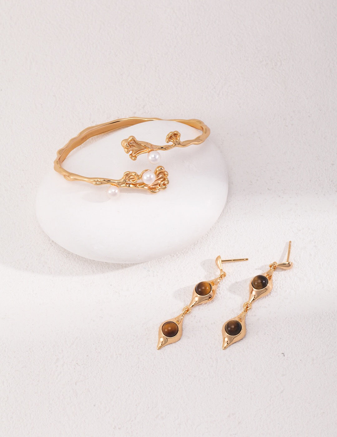 Handmade earrings featuring Tiger Eye Stone and Gold Vermeil (18ct gold plated on sterling silver).