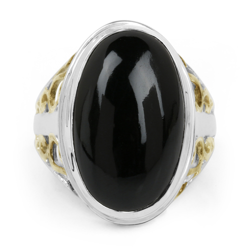 Two Tone Plated 10.92 Carat Genuine Black Onyx .925 Sterling Silver