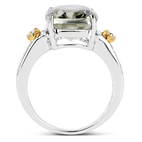 Two Tone Plated 5.06 Carat Genuine Green Amethyst & White Topaz .925