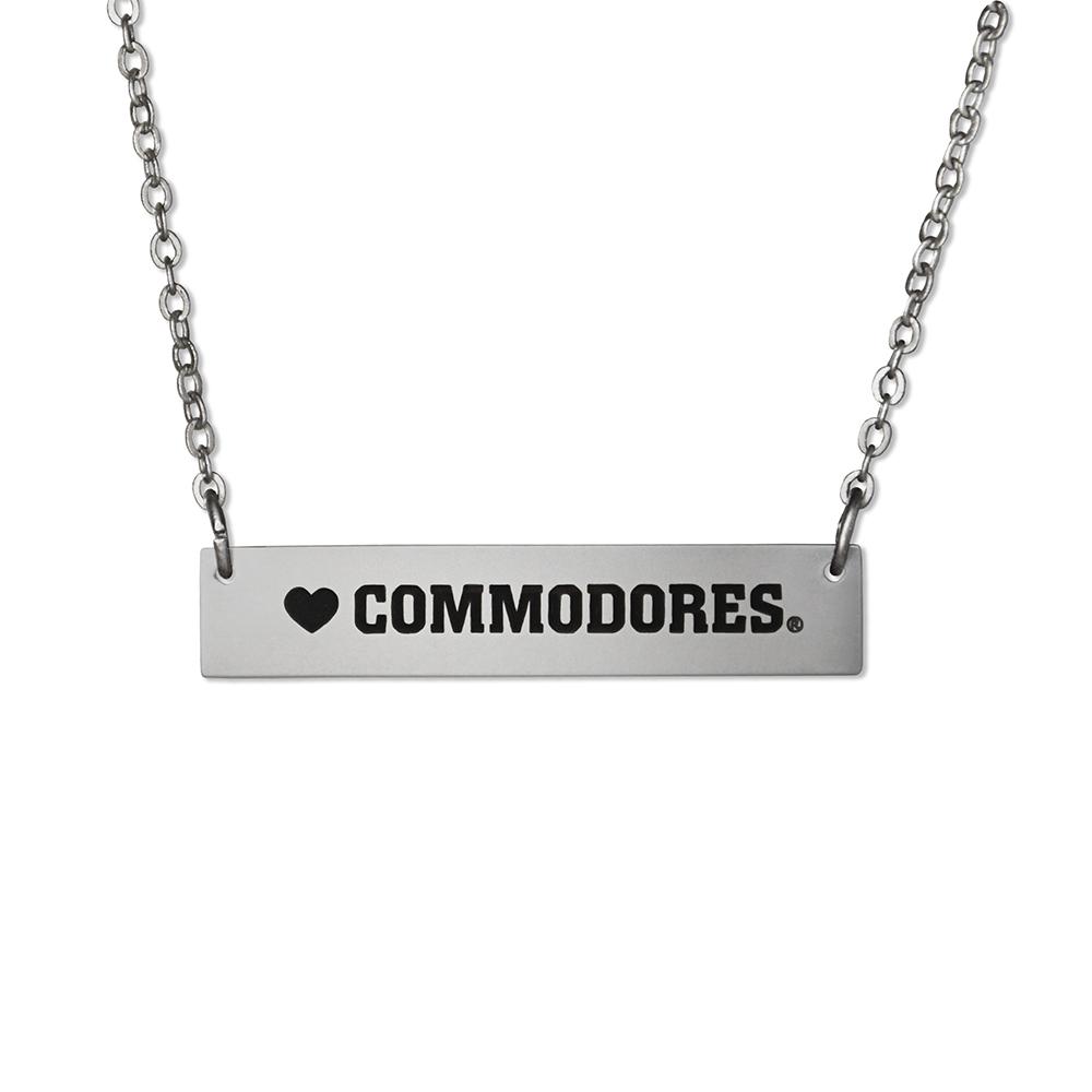 Vanderbilt Bar Necklace featuring a sleek bar design and adjustable chain, showcasing school spirit.
