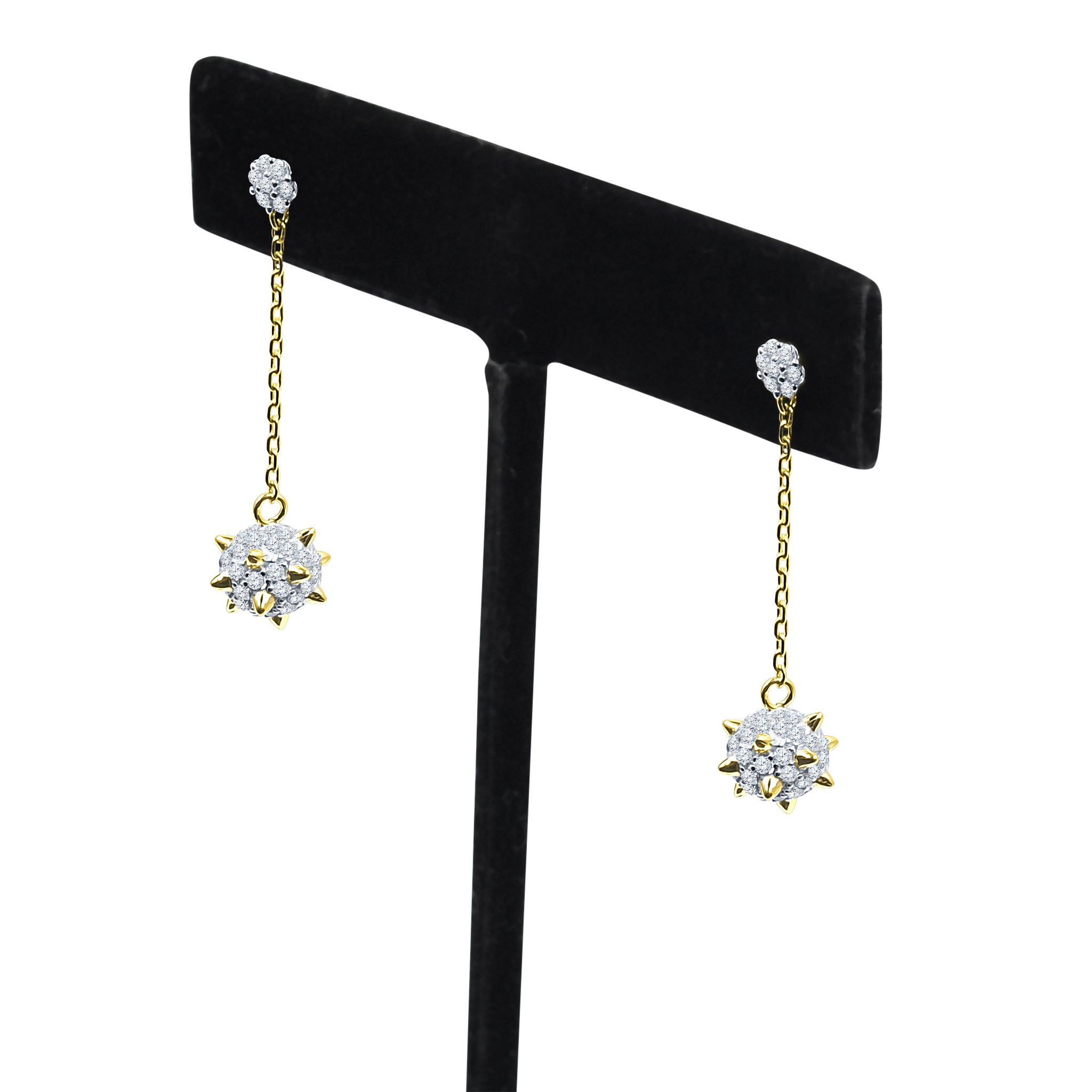 Introducing the VASTY Silver Earrings, a stunning piece of statement jewelry that effortlessly elevates any outfit. These earrings are designed to make a bold impression while maintaining an air of sophistication. With their unique prickly textured surface and dazzling cubic zircon stones, the VASTY earrings bring a touch of luxury to your everyday look.