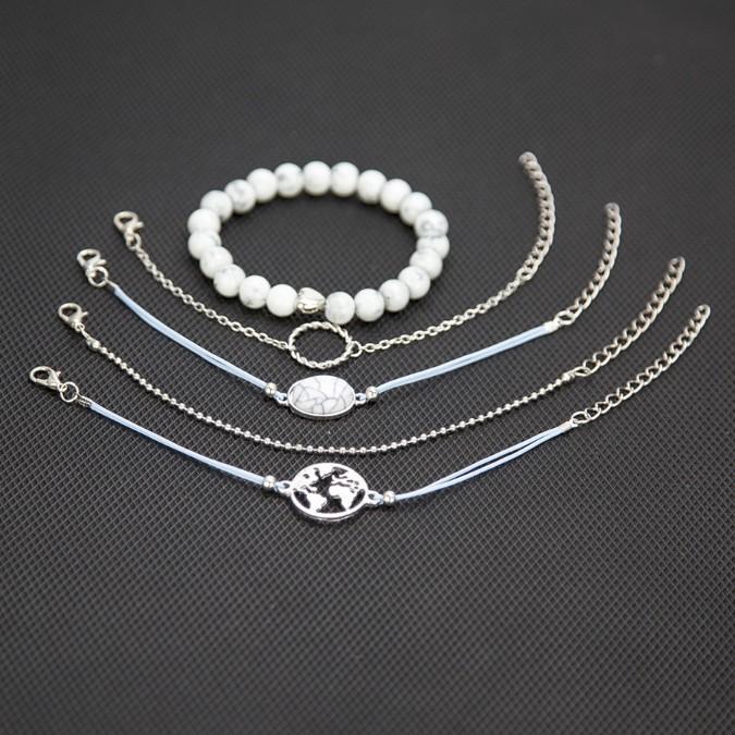 Dropship White Marble Filligree Strectch 5 Piece Bracelet ITALY Design