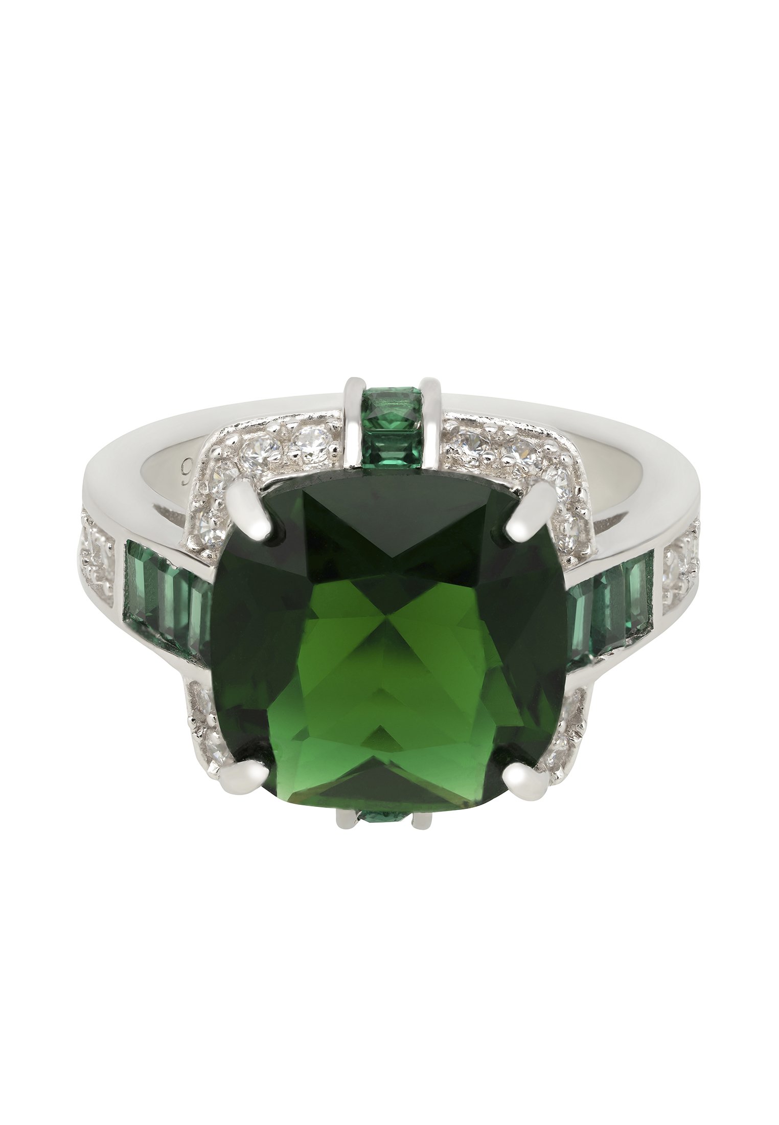 The Windsor Silver Ring Emerald is a breathtaking piece of jewelry that embodies elegance and sophistication. Designed for those who appreciate bold and colorful statement pieces, this stunning cocktail ring is sure to turn heads and make a lasting impression. The centerpiece of the ring is a beautifully crafted square-shaped cultured emerald, which is surrounded by a dazzling array of white zircons and cushion cut emeralds. This exquisite combination not only enhances the ring's overall aesthetic but also adds a touch of sparkle and glitz that is perfect for any occasion.