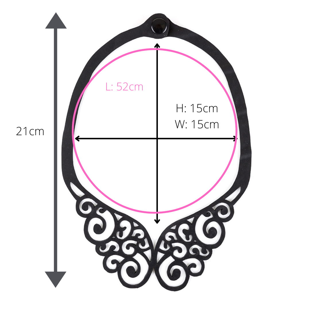 Measuring 17cm in length and 8cm at its widest point, the Wing Intricate Necklace is designed to be a versatile accessory that can complement a variety of outfits. Whether you're dressing up for a special occasion or adding a touch of flair to your everyday look, this necklace is sure to make a statement.