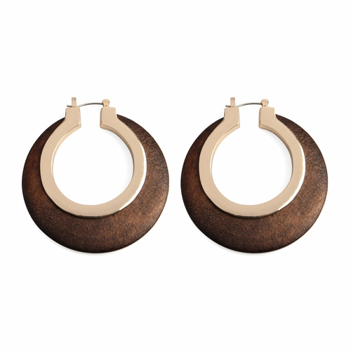 Discover the Elegance of Wood In Metal Hinge Hoop Earrings