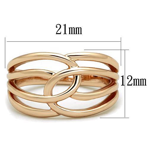 Elegant Women Stainless Steel No Stone Ring in IP Rose Gold finish, showcasing a minimalist design without any stones.