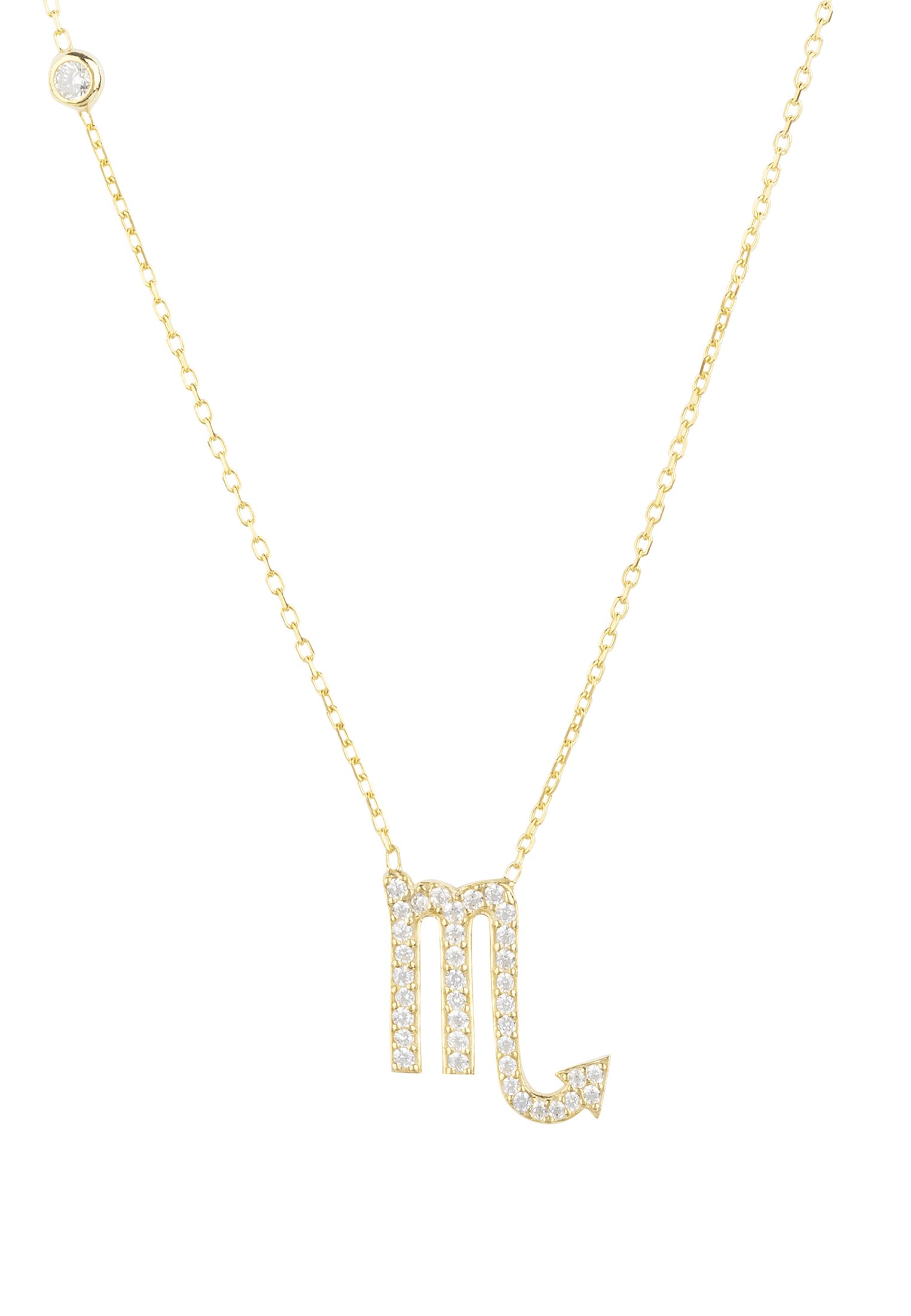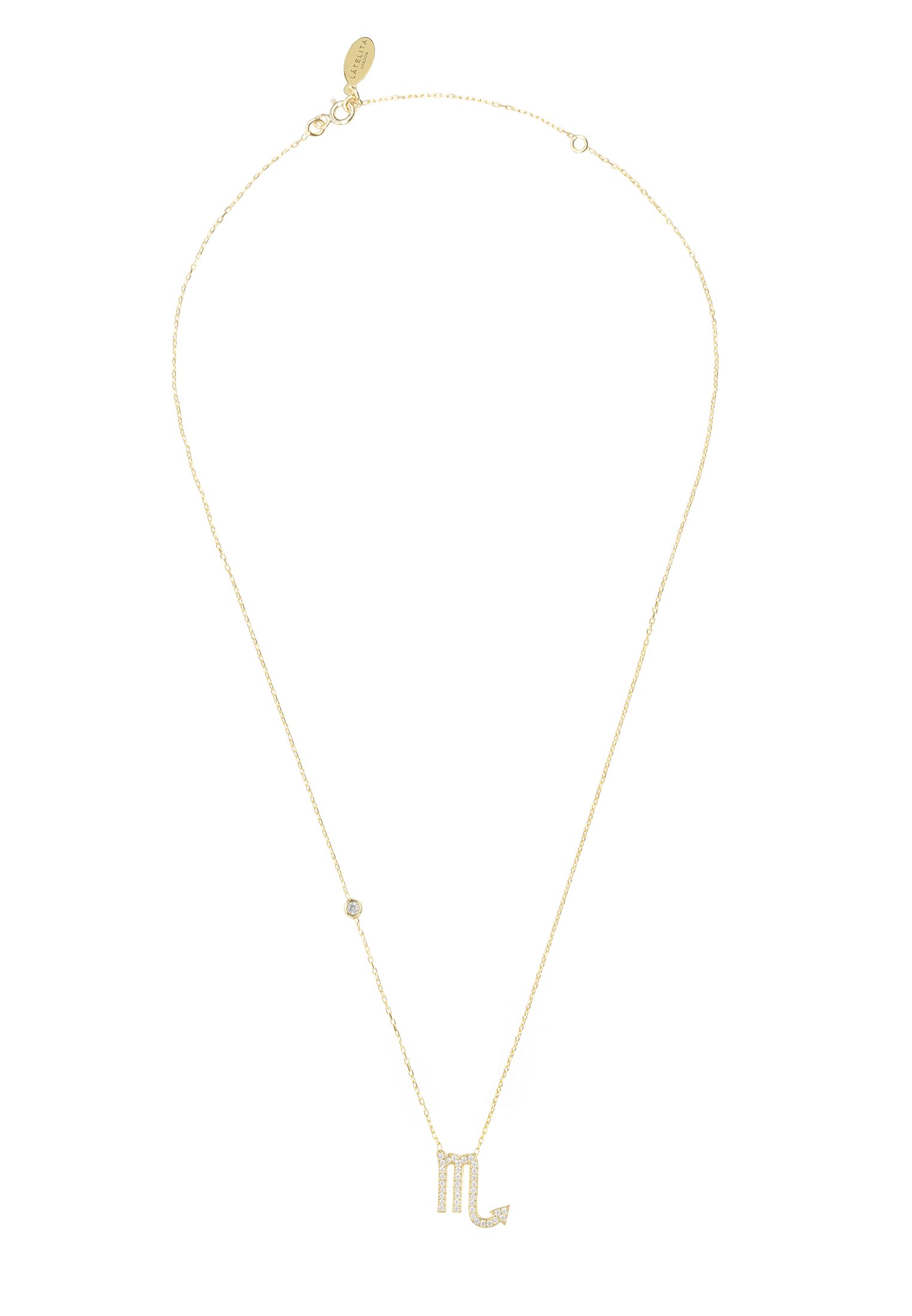 Gold Scorpio Zodiac Star Sign Pendant Necklace with white zircons, crafted from 925 sterling silver, featuring an adjustable chain.