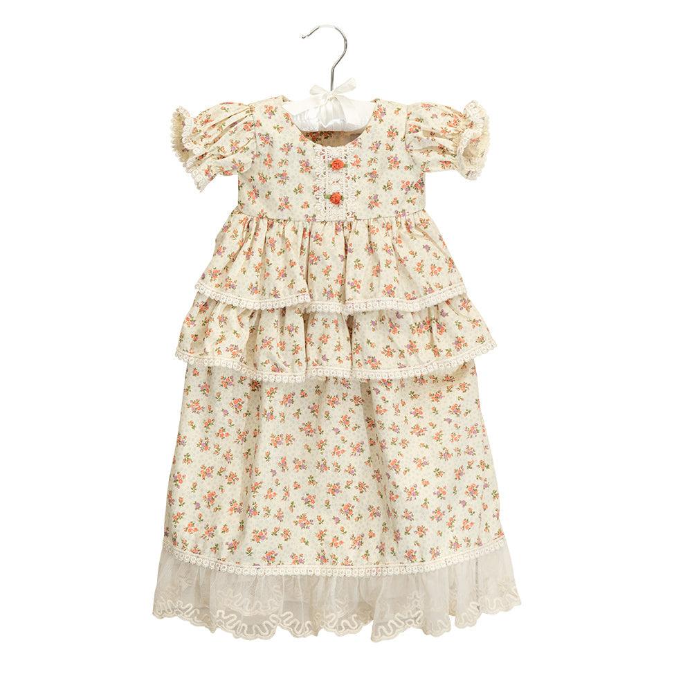 Made from high-quality, soft fabric, the Arabella Gown is designed to be gentle on your baby's delicate skin. The floral design is not only visually appealing but also timeless, ensuring that your baby will look stylish in any setting. The gown's vintage look is complemented by its thoughtful details, such as lace trims and puffed sleeves, which enhance its overall charm.