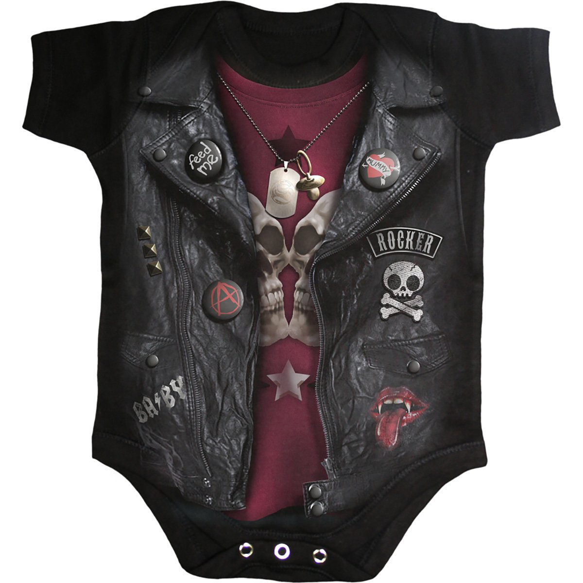 Every little one deserves to express their personality, and the Baby Biker Sleepsuit does just that! With its trendy biker design, complete with faux leather waistcoat details, badges, patches, and band logos, your baby will be the coolest kid on the block. This unique design is perfect for parents who want their children to stand out and make a statement from an early age.