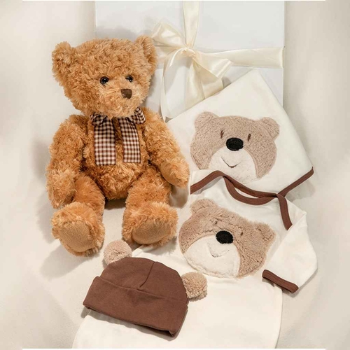 The Bear Wear Gown Set is an adorable and practical gift for new parents and their little ones. This delightful set includes a soft and cozy gown, a matching cap, a warm blanket, and a cute plush toy, making it an ideal choice for baby showers or welcoming a newborn into the family. Each item in the set is designed with comfort and style in mind, ensuring that your baby will look adorable while feeling snug and secure.