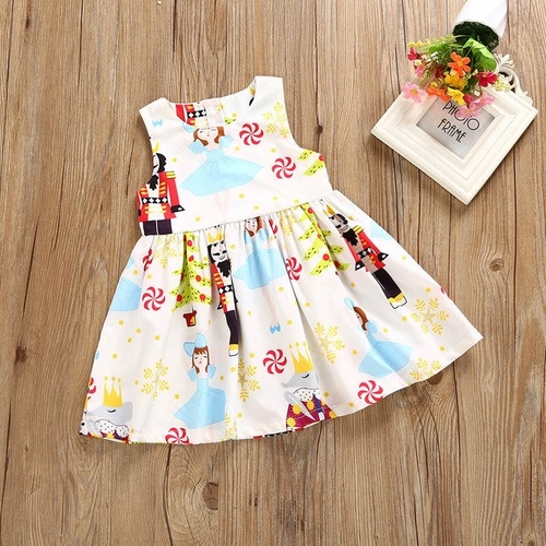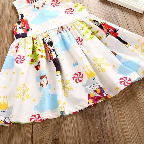 Dropship Girls Cartoon Comic Print Dress Solid Color