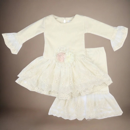The Juliet Infant Toddler Girls Tutu Set is the epitome of classic elegance for your little princess. This stunning outfit features a beautiful off-white color that exudes charm and sophistication, making it suitable for a variety of occasions, from birthday parties to family gatherings. The delicate lace and rosettes add a touch of whimsy and grace, ensuring your child stands out in any crowd.