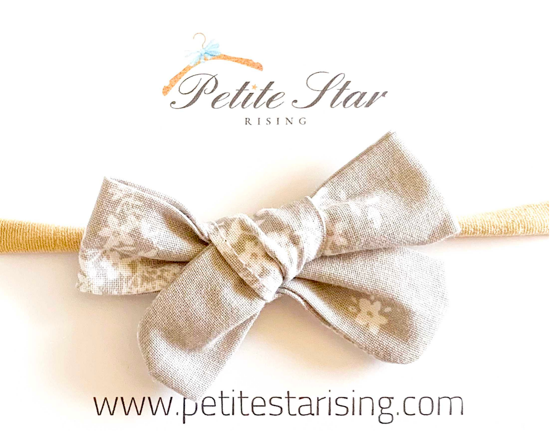 This Light Gray Floral Baby Headband is made to order, so please allow 3 business days for your order to be processed and produced. Once your order has been shipped, typical delivery is between 2-5 business days. Please note that upgrading your shipping does not affect the processing or production time, so be sure to select your shipping option at checkout.