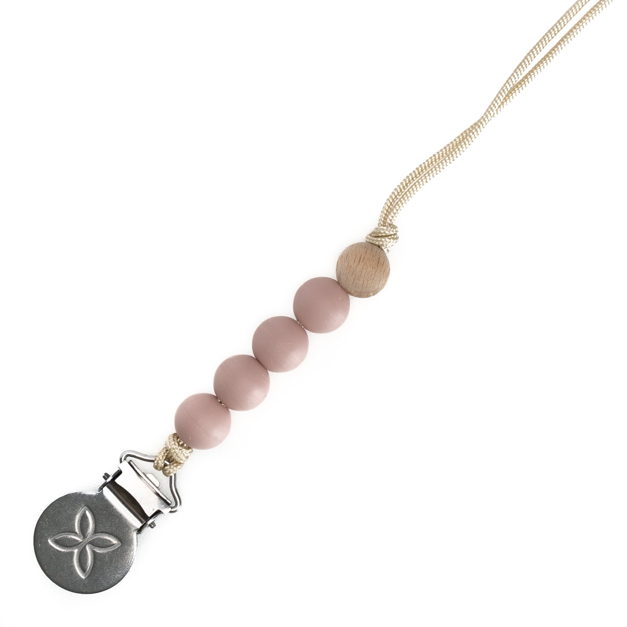 A colorful PACI CLIP made of soft silicone, designed to attach pacifiers and other baby items securely.