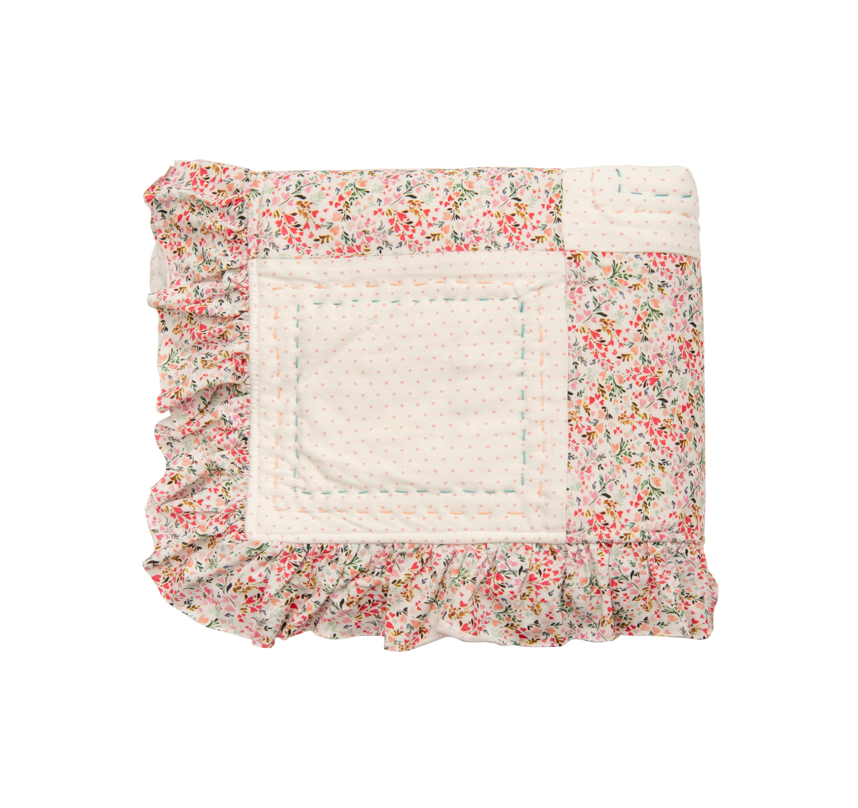 Each quilt in the Pinkalicious Gift Set is hand-stitched with love, showcasing the attention to detail and quality craftsmanship that goes into every piece. The soft cotton fill ensures that the quilt is lightweight yet warm, making it suitable for year-round use. The floral ditsy print is not only visually appealing but also versatile, complementing a variety of nursery themes.
