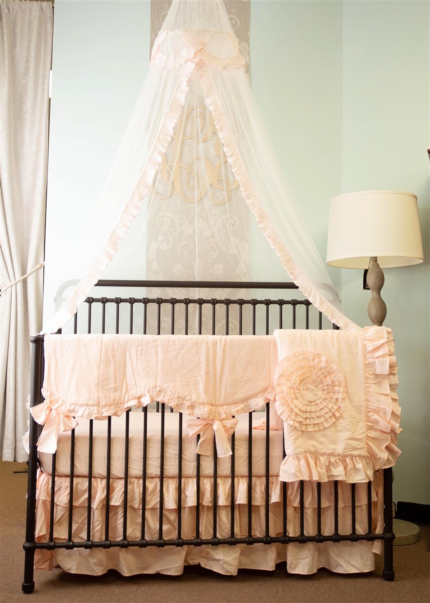 To complete the look of your nursery, consider pairing the Posh Dreams Pink Ruffle Cotton Bedding Set with a matching canopy, sold separately. The canopy adds an extra layer of charm and can help create a cozy nook for your baby. Together, they will transform your nursery into a dreamy retreat.