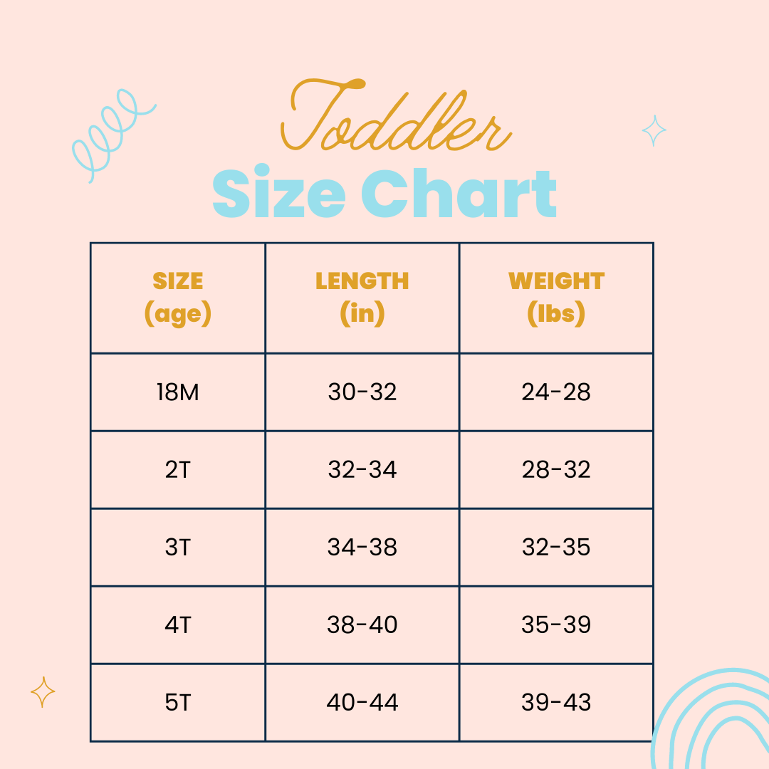 These sizes ensure a comfortable fit for your toddler, allowing them to move freely while looking adorable.