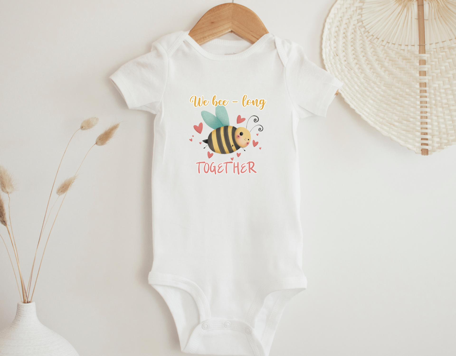 The Wee Bee Long Together Bodysuit features a high-quality heat transfer vinyl design that is professionally applied to the fabric using a state-of-the-art press machine. This ensures that the design is durable and long-lasting, even after multiple washes. The bodysuit is CPSIA compliant, meaning it meets the safety standards for children's clothing, giving you peace of mind as a parent.