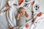 ⭐️Keep in touch with the Owley double sided baby milestone blanket for the ultimate little sports fan! We were excited to design this unique blanket with the idea of two blankets sewn together to make a double layer of softness.