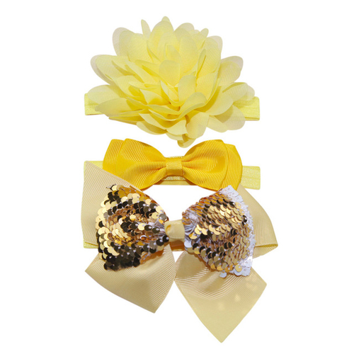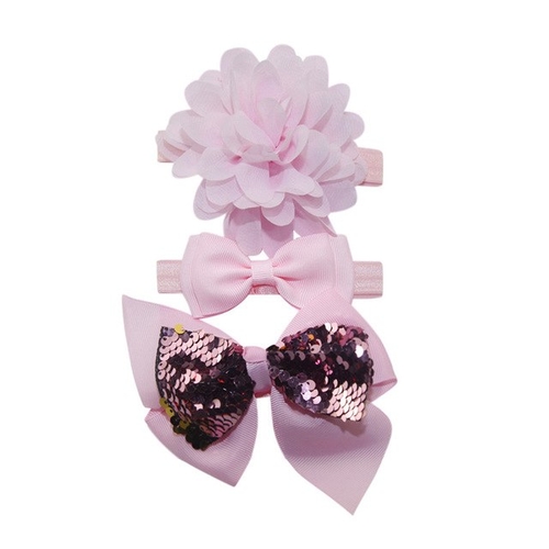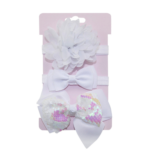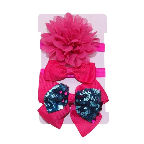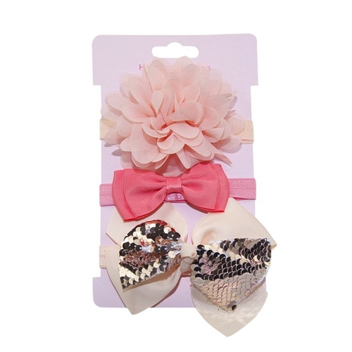 3Pcs Kids Elastic Floral Headband shiny Sequins
