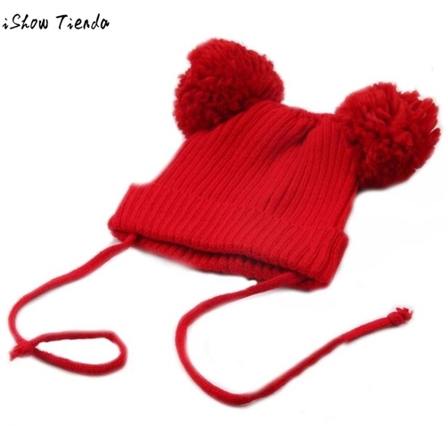 Winter Hats For Kids Cute Baby Dual Hairball Warm