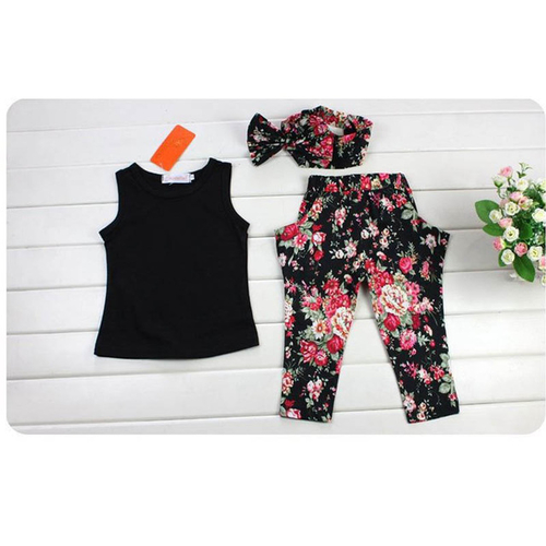 1Set Girls clothes Sleeveless Black Shirt Pants