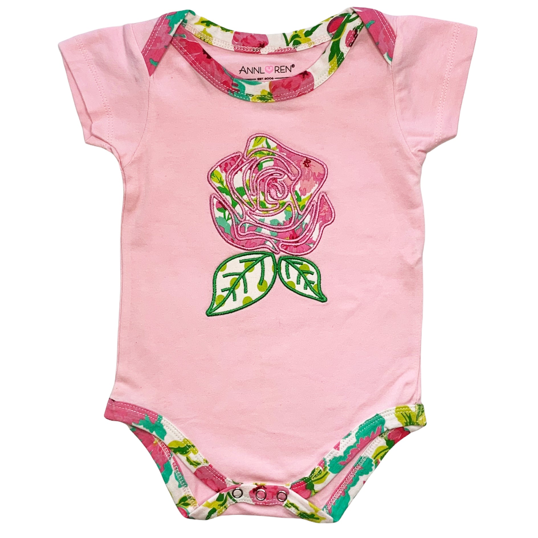 Made from 95% Egyptian cotton and 5% stretchy lycra, this layette set offers a soft and gentle touch against your baby's skin. The premium fabric ensures durability and comfort, allowing your baby to move freely while looking cute. The original AnnLoren design features a beautiful floral appliqué that adds a touch of elegance to the outfit.
