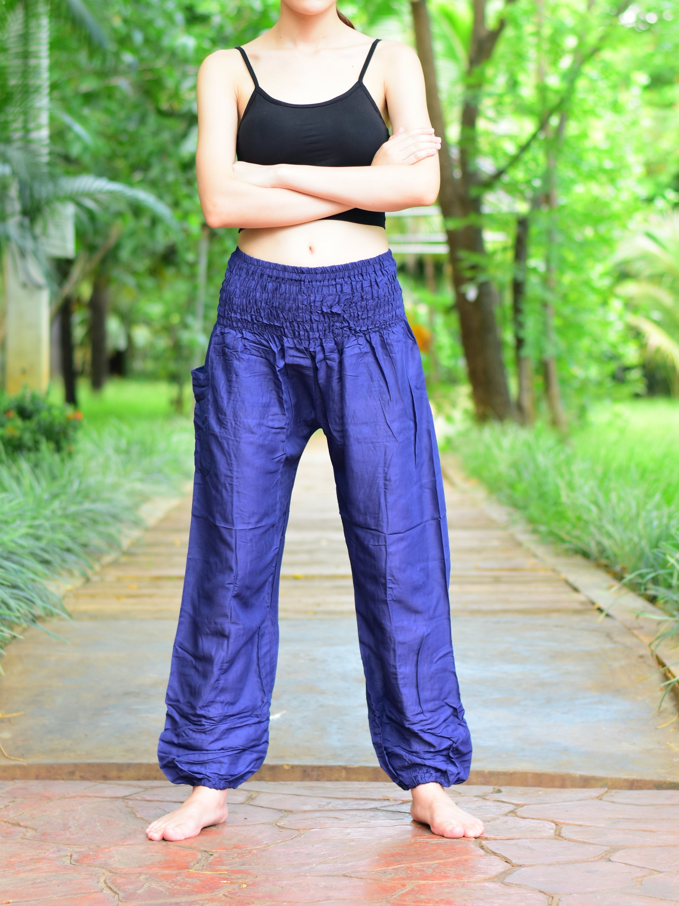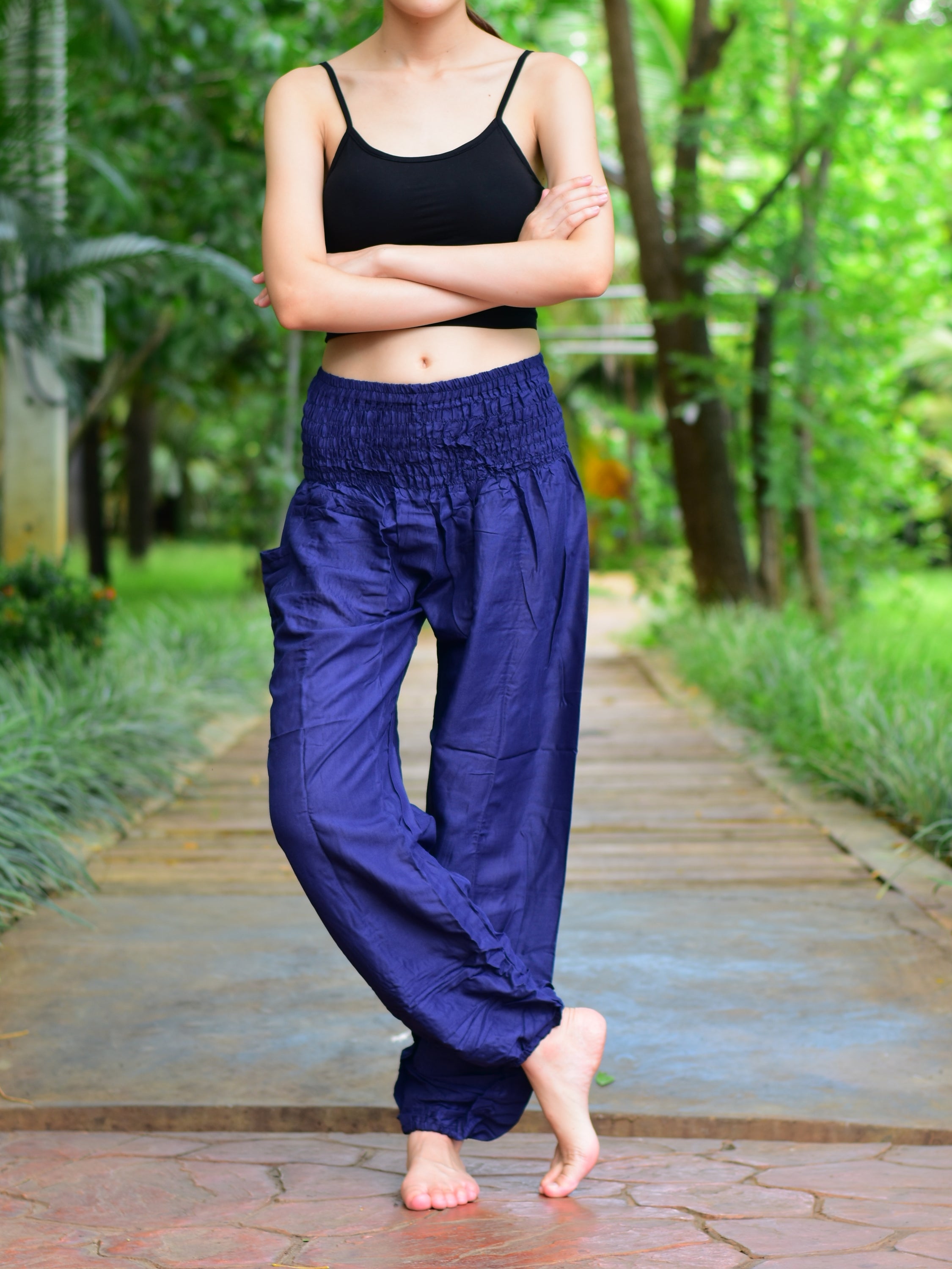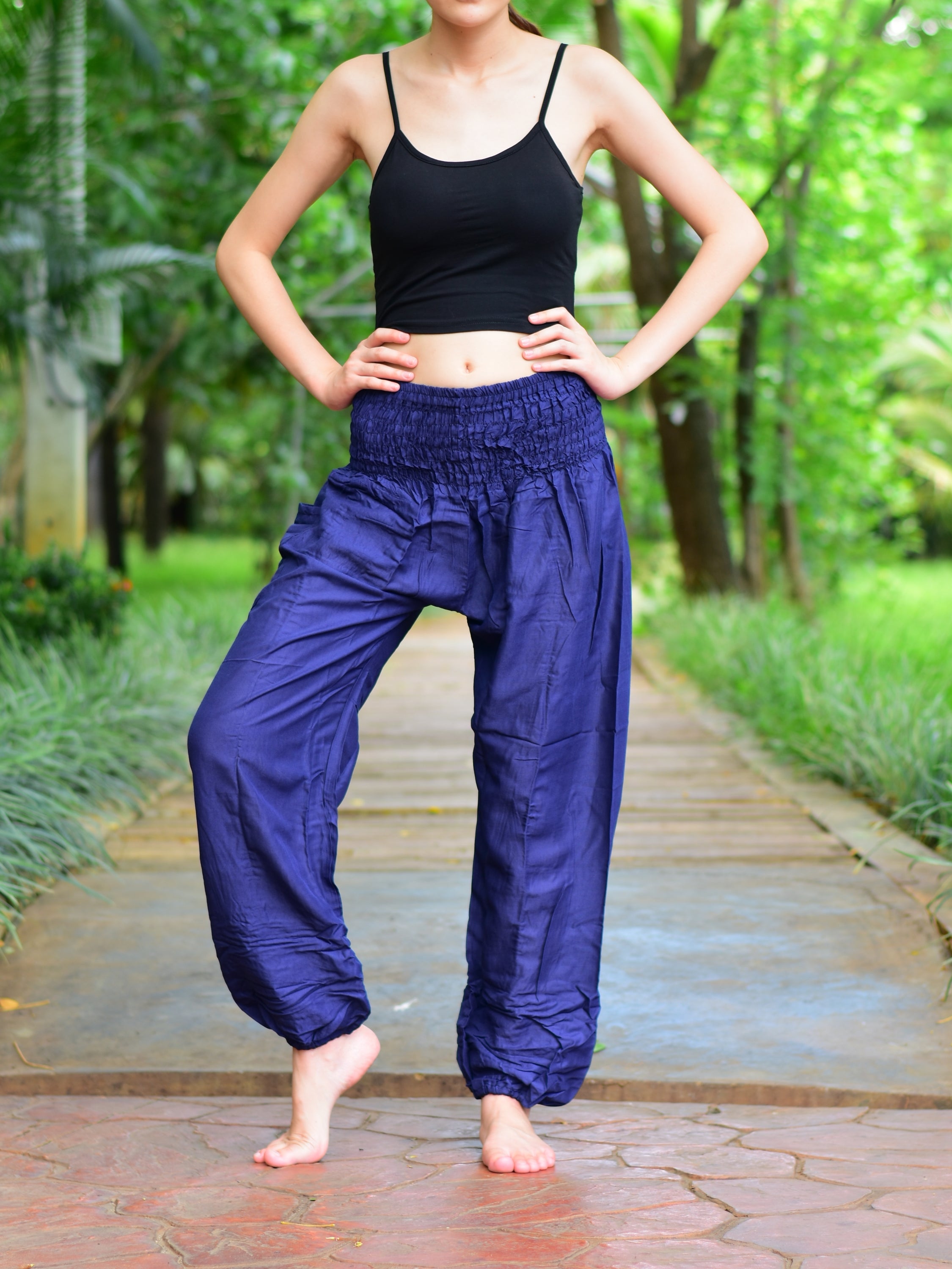 Introducing the Bohotusk Kids Girls Plain Navy Blue Elasticated Smocked Waist Harem Pants, a perfect blend of comfort and style for your little ones. Handcrafted in Thailand, these harem trousers are made from 100% super soft rayon material, ensuring that your child feels comfortable while looking fashionable. The lightweight yet resilient fabric makes these pants ideal for everyday wear, whether for playdates, school, or family outings.