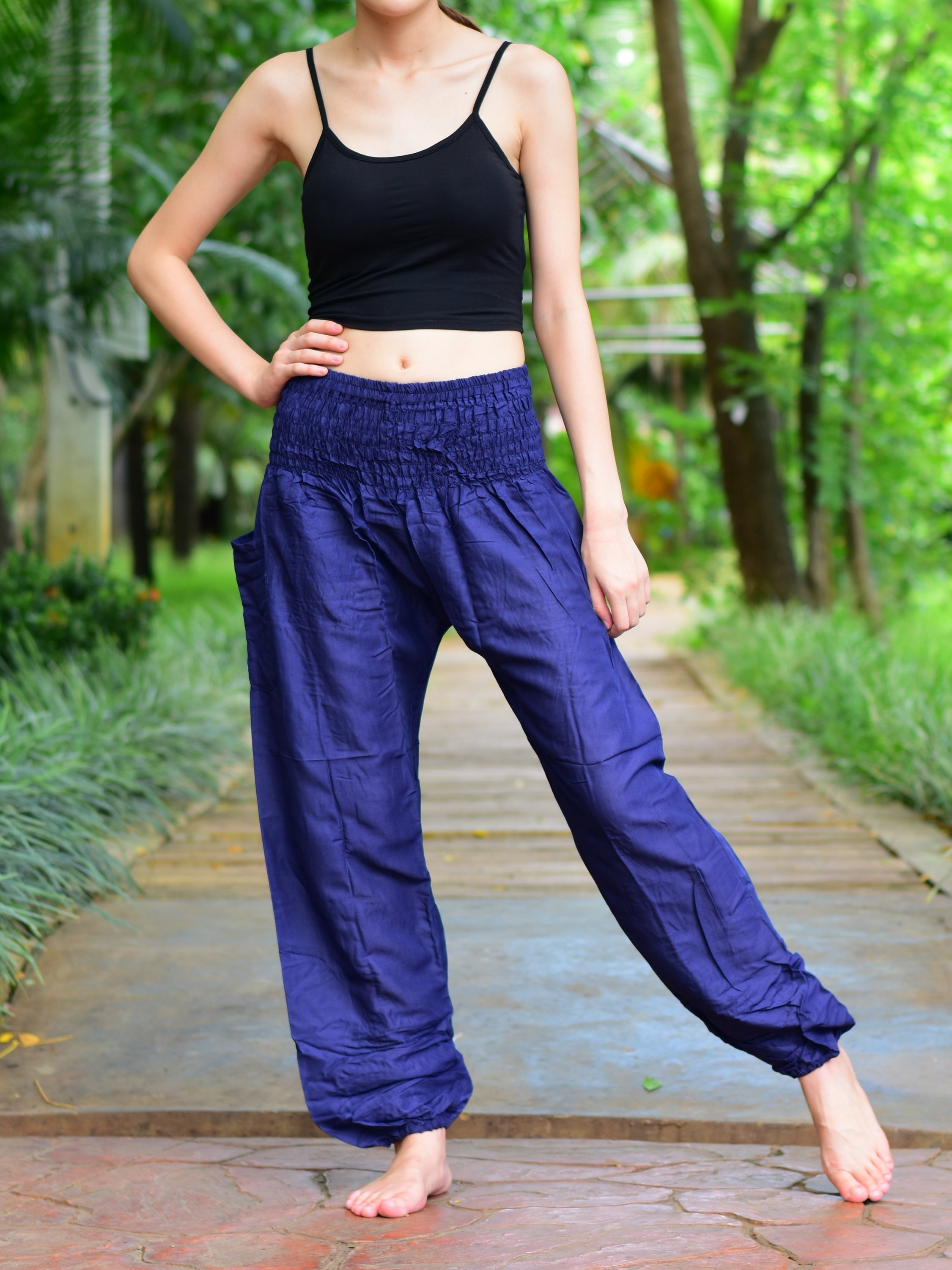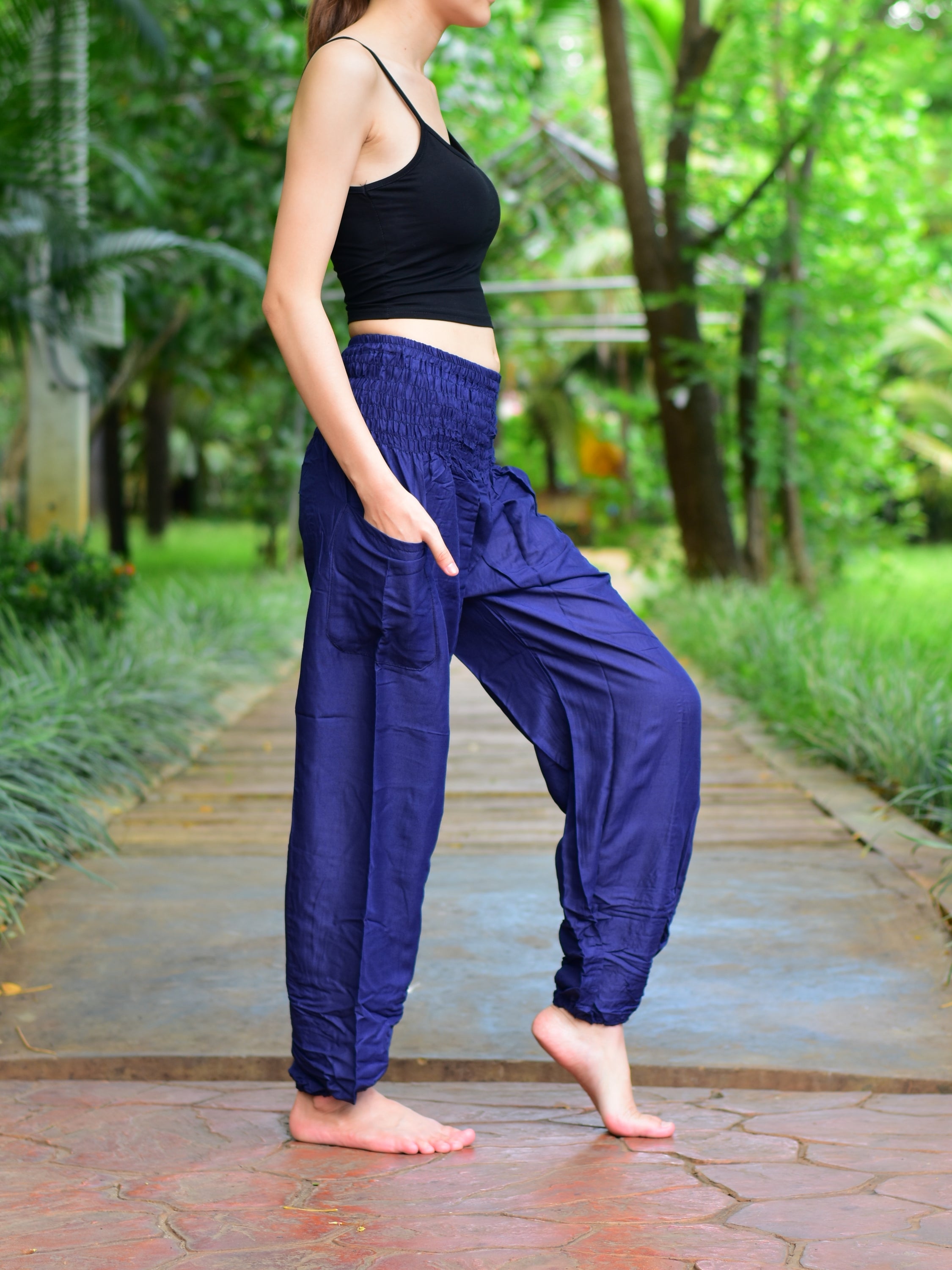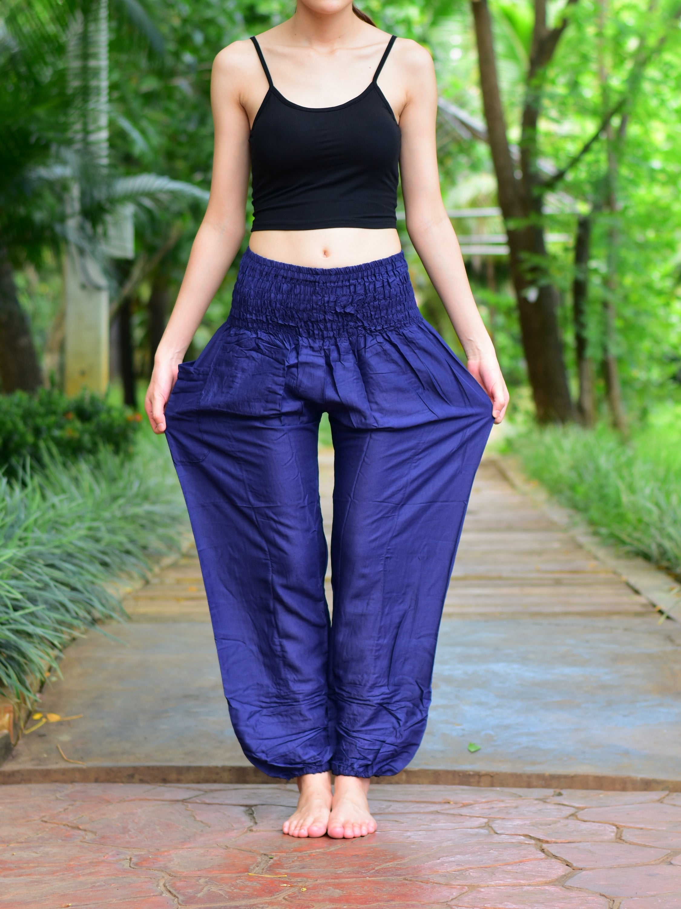 Introducing the Bohotusk Kids Girls Plain Navy Blue Elasticated Smocked Waist Harem Pants, a perfect blend of comfort and style for your little ones. Handcrafted in Thailand, these harem trousers are made from 100% super soft rayon material, ensuring that your child feels comfortable while looking fashionable. The lightweight yet resilient fabric makes these pants ideal for everyday wear, whether for playdates, school, or family outings.