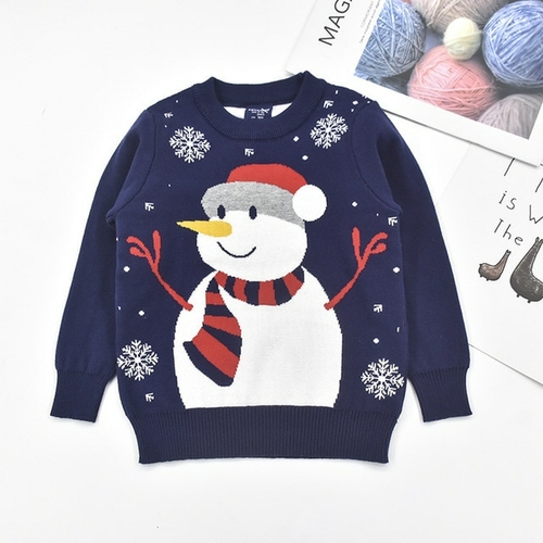 A charming children's sweater for the holidays! The top features a cute Christmas snowman print.