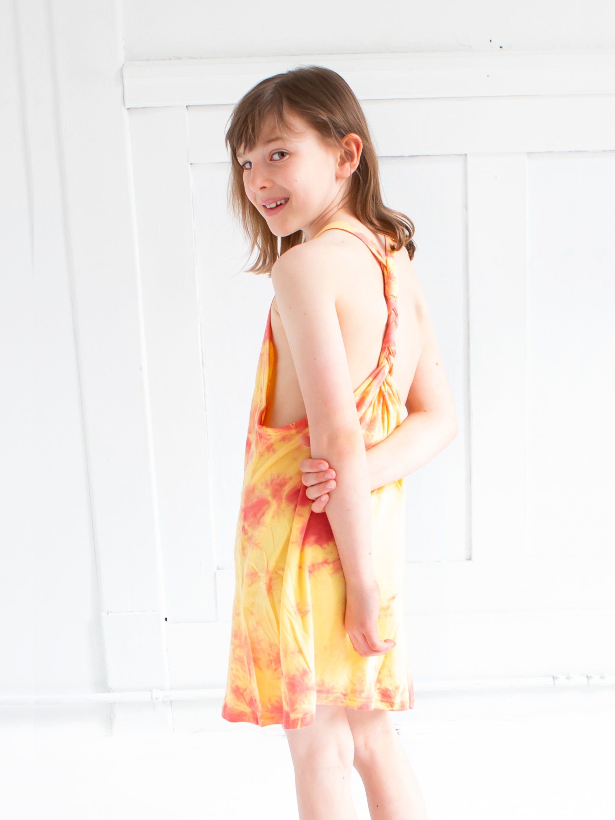In summary, the Em Braided Tie Dye Tank Dress is a must-have for any girl's summer wardrobe. With its unique design, comfortable fit, and ethical production, it checks all the boxes for style and practicality. Make this summer unforgettable with a dress that embodies fun, fashion, and individuality!