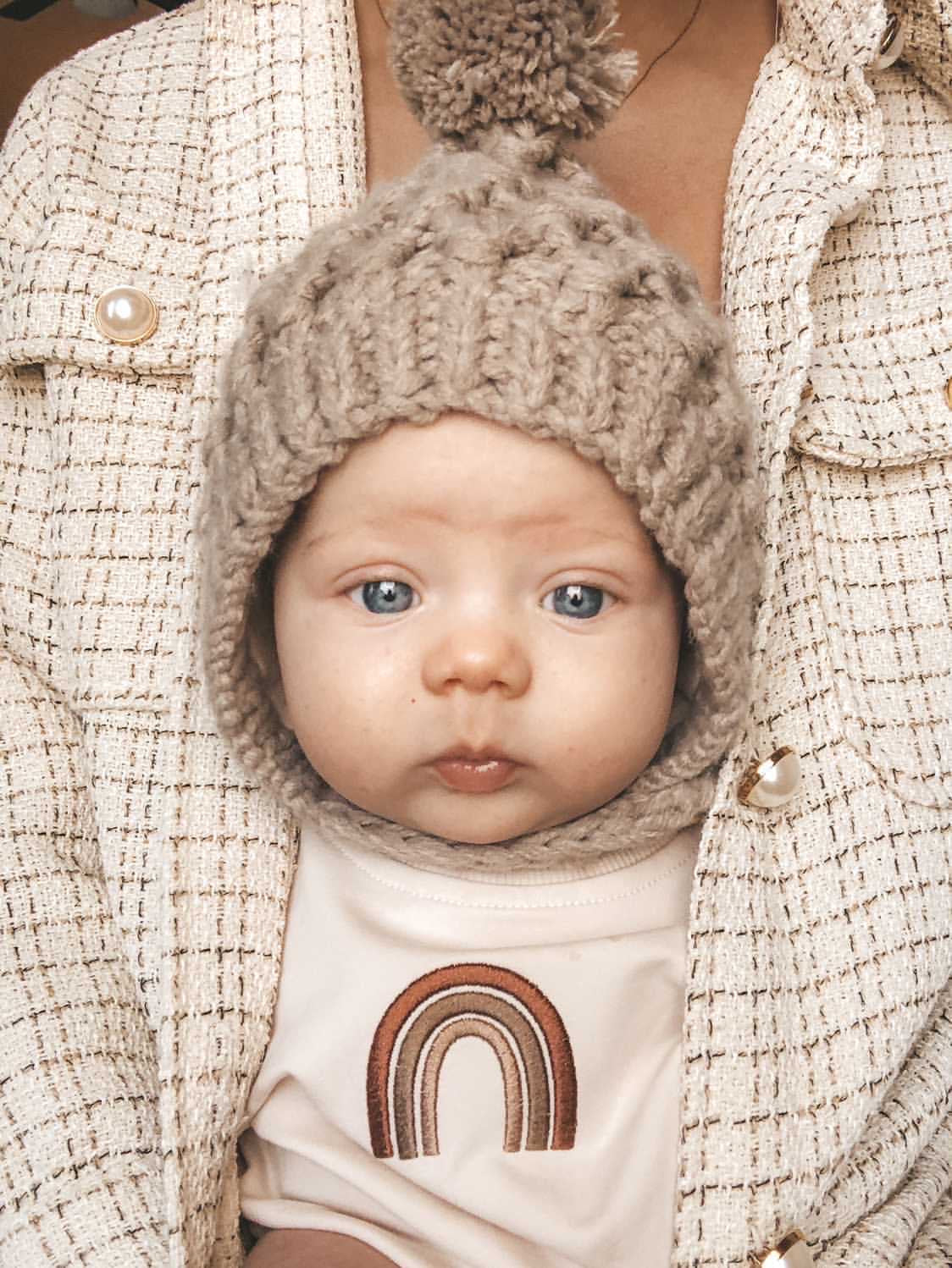 Please note that due to lighting and screen settings, there may be slight color variations in the Knit Bonnet. We strive to provide accurate representations of our products, but variations can occur. Rest assured, the ash color is a beautiful choice that complements a variety of outfits.