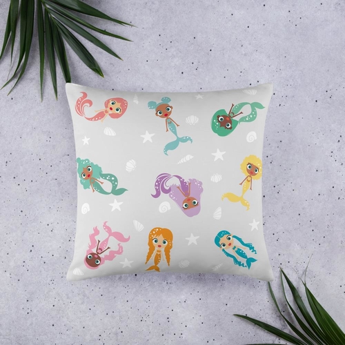 This throw pillow is versatile enough to complement various decor styles, from coastal and nautical themes to playful children's rooms. Its whimsical design makes it a fantastic choice for nurseries, playrooms, or even as a fun accent in your living room or bedroom. The Kritter Mermaid Graphic Throw Pillow can easily become a beloved piece in your home.