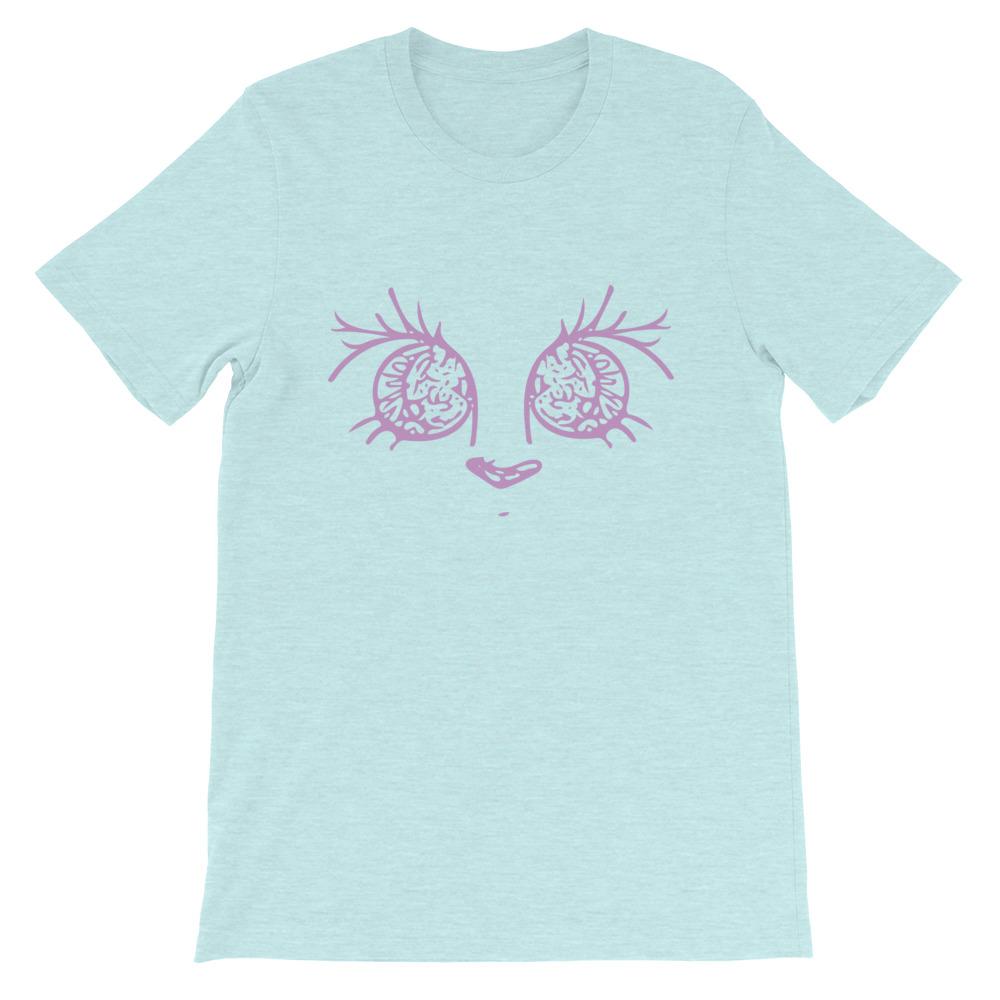 Pretty Eyes Adult Unisex T-shirt in various colors, showcasing its soft fabric and stylish design.