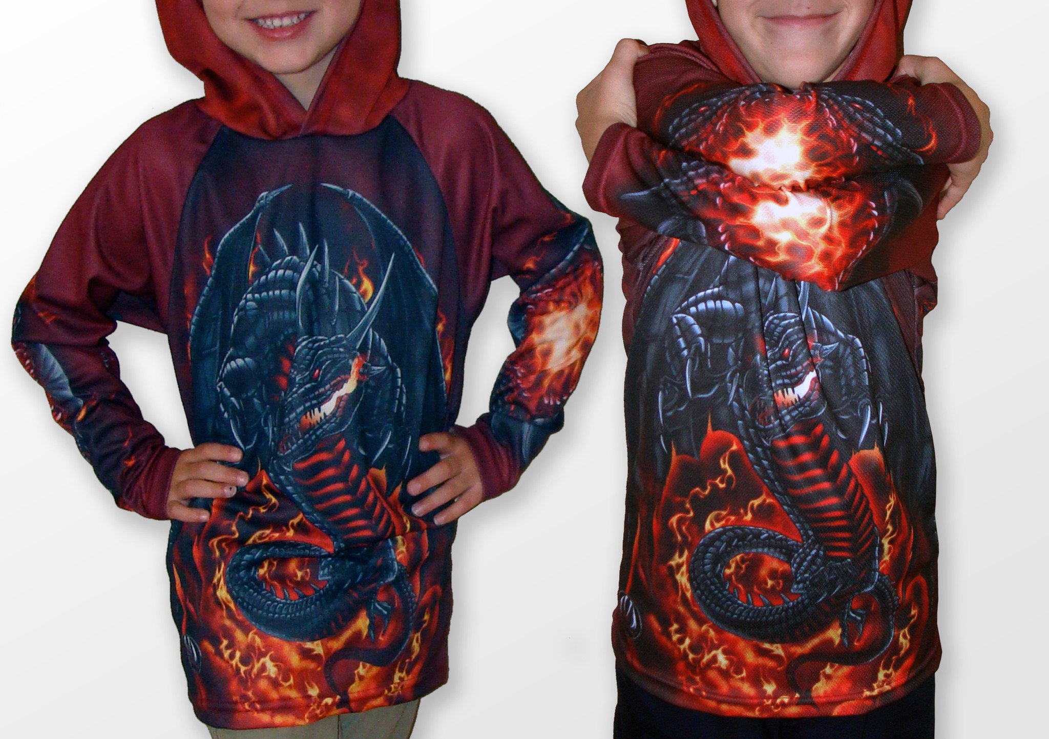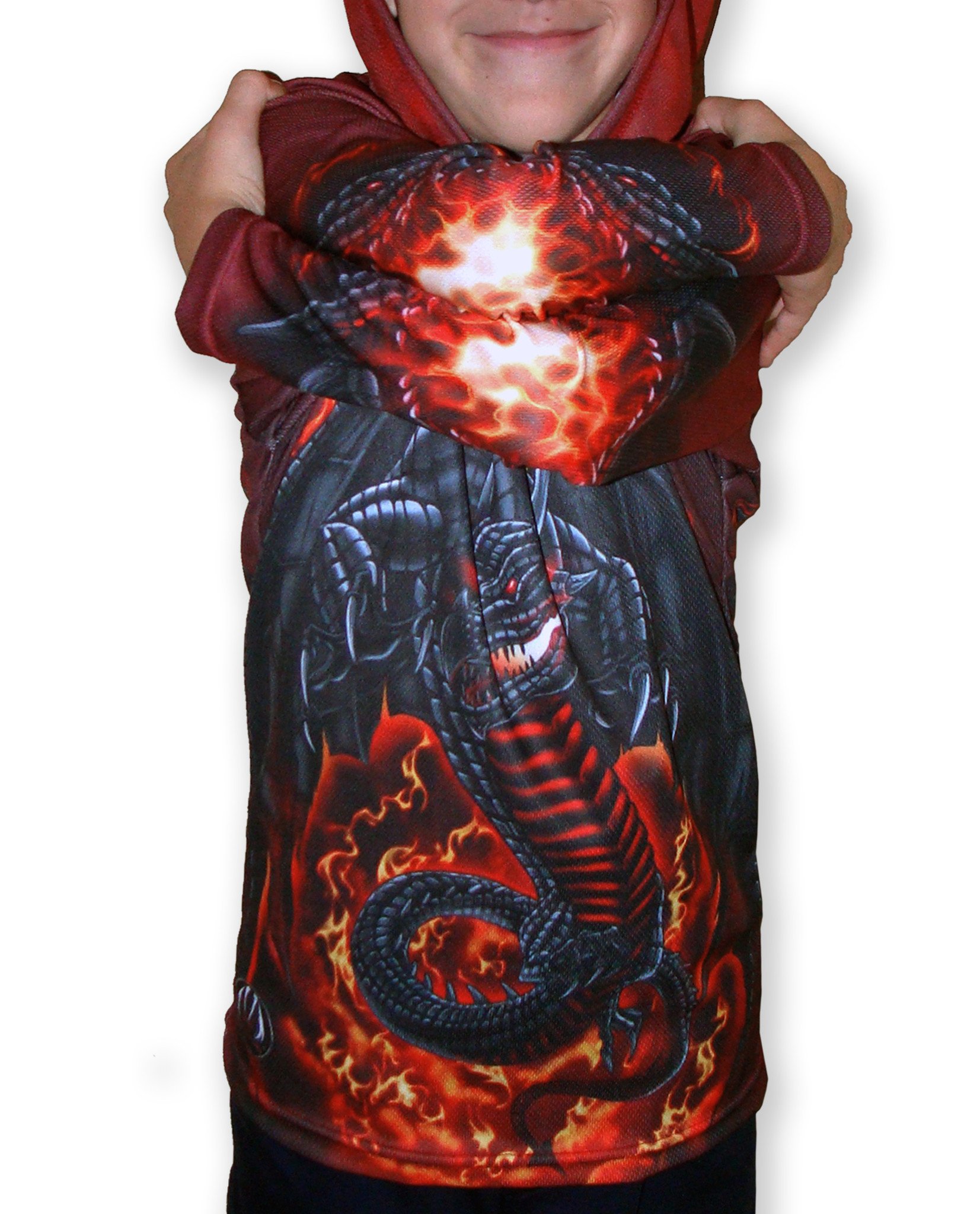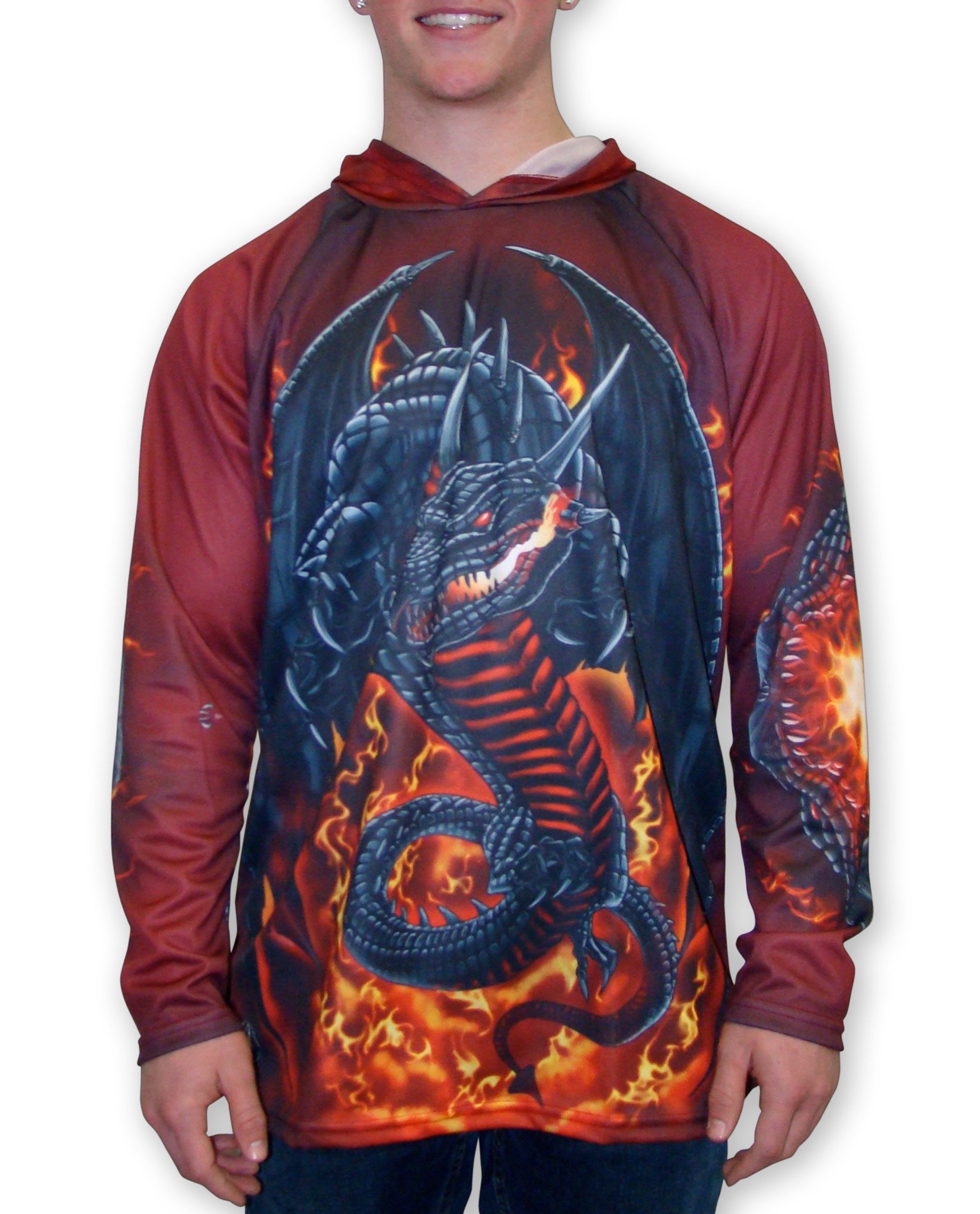 Introducing the ROARING DRAGON Hoodie Sport Shirt by MOUTHMAN®, a truly unique piece of apparel that allows you to express your fierce personality. This one-of-a-kind hoodie features a stunning fire-breathing dragon graphic on the chest. When you fold your arms across your chest, the design transforms to reveal an open-mouthed dragon that seems to breathe fire right at you! Perfect for those who want to make a bold statement, this shirt is not just a piece of clothing; it's an experience.