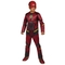 Want to be a speed demon The put on the Boys Justice League Deluxe Flash Costume. Ezra Miller, as Barry Allen, wears a similar outfit in the Justice League movie. The red jumpsuit is accented with yellow lightning bolts all over and a Flash logo on the chest; It has a padded chest so you will look extra buff. It comes with boot tops, mask and gauntlets. Put it on and head out to hang with Superman, Batman, Wonder Woman and Aquaman.