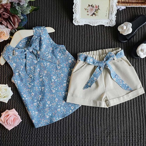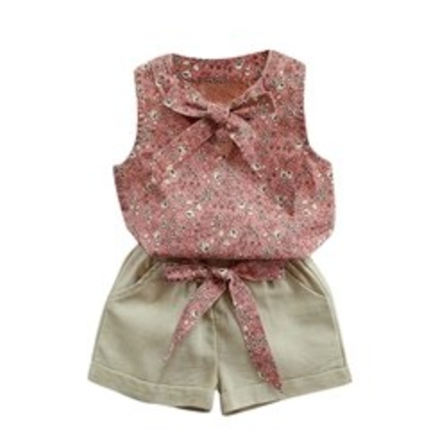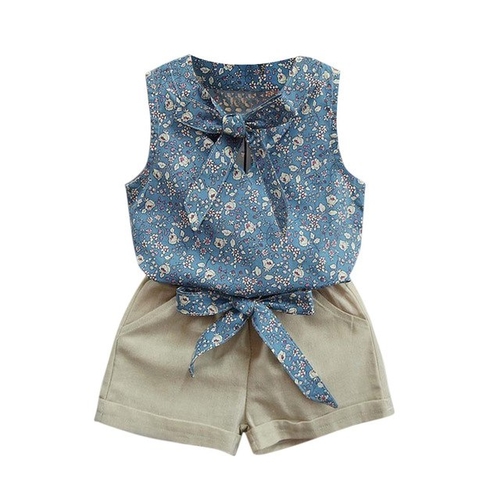 Dropship Summer baby Girls Floral Bow Vest Set + Solid